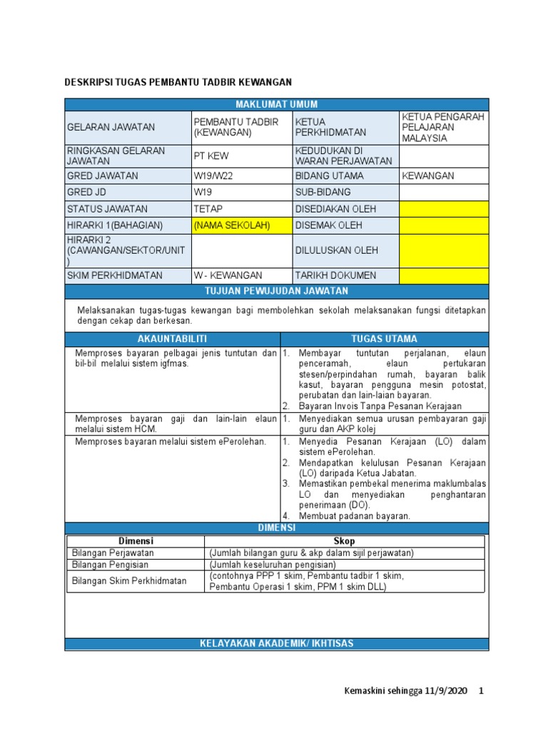 Arahan Pentadbiran Bil 022021. 20 Oktober 2020 50609 Kuala Lumpur 03 Rabiul Awal 1442H PERTUKARAN PERUBAHAN JAWATAN PEGAWAI PERKHIDMATAN PENDIDIKAN BIL. Anda berada di sini.