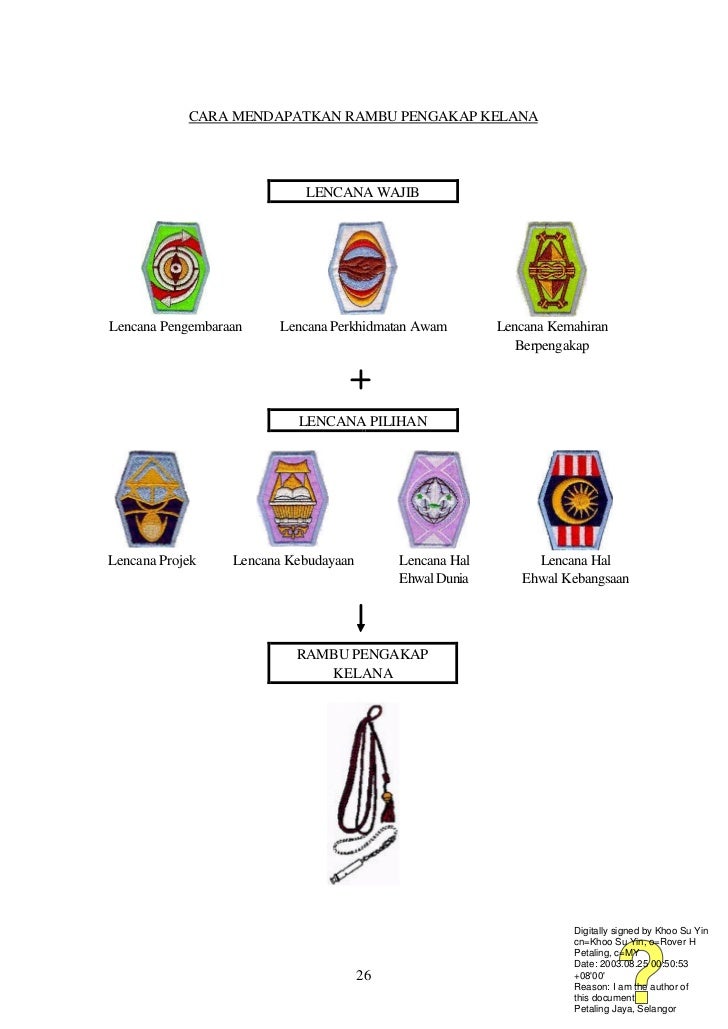 Skim Latihan Pengakap Kelana. Semua laporan ujian. Telah mencapai darjah yang tertinggi dalam ilmu asas perbarisan sebagaimana yang dikehendaki dalam Lencana Usaha Lencana Maju Lencana Jaya kawat tongkat serta cara membawa bendera dan telah melatih dengan jaya satu unit Pengakap dalam ilmu tersebut.